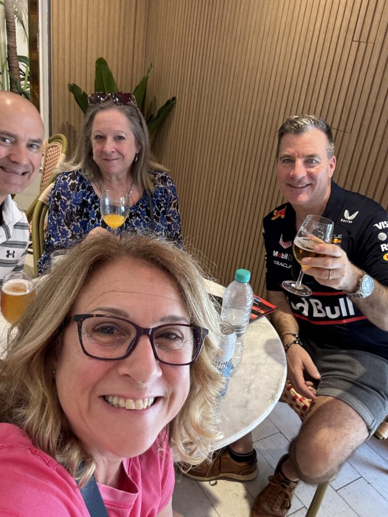 We arrived close to 11 am and were thrilled to learn that our room was already ready. That meant a quick refresh, a change into shorts (we had just left 40-degree weather and landed in a 90-degree heat wave ☀️), and then we were off to meet up with our friends Catherine and Scott, who are joining us on the cruise.