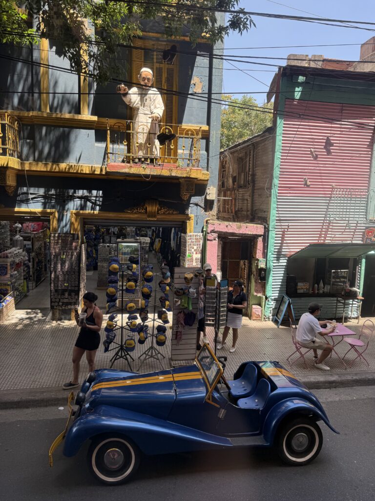 In the La Boca neighborhood – lots of bright buildings, street vendors and outdoor cafes.