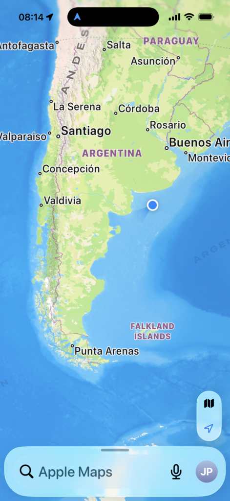 On the way to Puerto Madryn, which looks like a sideways jellyfish coming out of the side of Argentina.