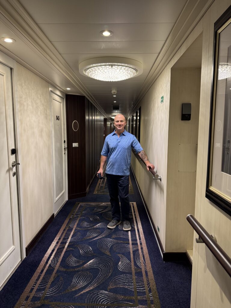 In the hallway where our cabin was – John is standing in front of 843 and ours is closest to me, 841.