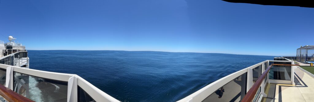 After breakfast, we made our way to the Constellation Theater for a mandatory Antarctic briefing. All passengers are required to attend, and it covered the important do’s and don’ts for when we reach the region. Once that wrapped up, we headed back to the room. I changed and went for a walk on the upper-deck track followed by some time in the gym, while John returned to the theater for a Future Voyages presentation highlighting upcoming trips. We regrouped afterward, switched roles—John headed to the gym, and I worked on the blog.