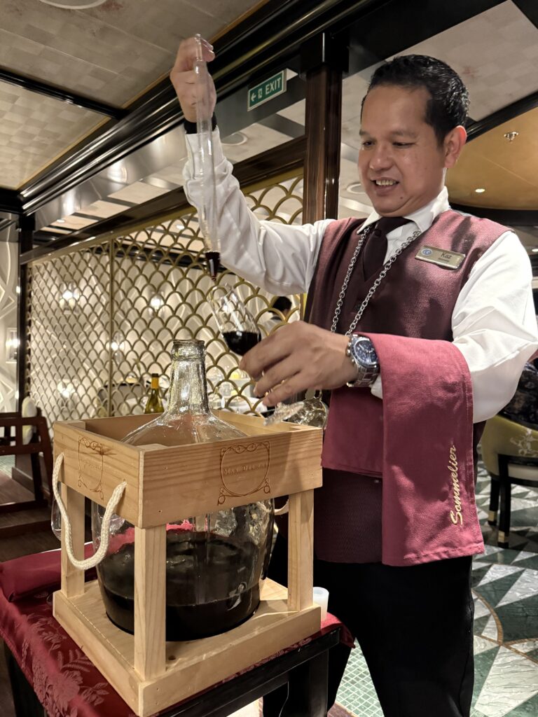 Kaz, the sommelier in Chartreuse, serving us the port that is specially made for the restaurant.