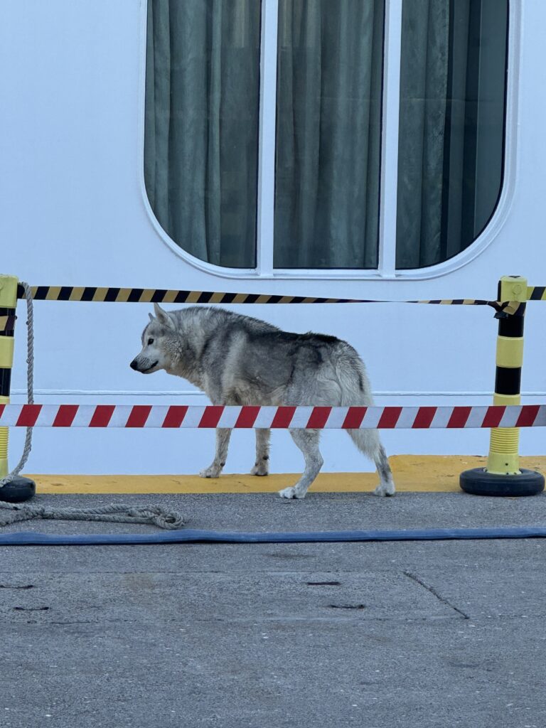 Back in the room, we battened down the hatches. The captain had warned us of rough seas overnight and into tomorrow, with winds and swells possibly reaching 15 feet. The weather wasn’t expected to start until morning, but we secured everything just in case.