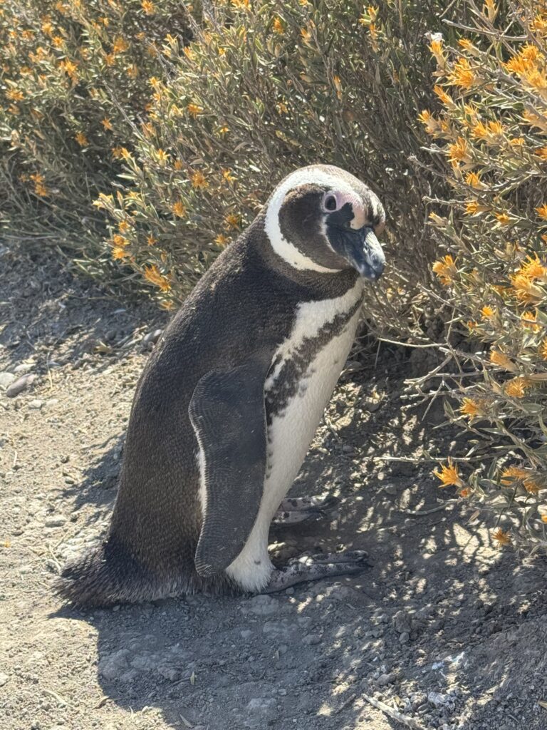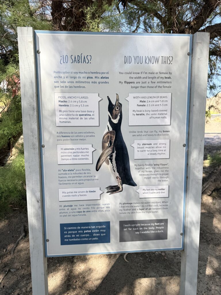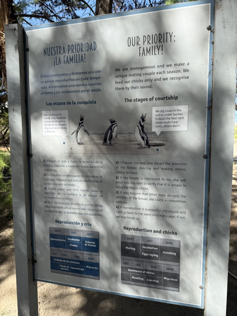 Eventually, we arrived at El Pedral, an estancia (ranch) where the penguin colony is located. Magellanic penguins are native only to South America and gather in large breeding colonies along the coasts of Argentina and Chile. The Punta Ninfas colony is one of the youngest in the region. Each September, penguins return—often to the same mate and nest. The males arrive first to claim their nesting spots, and the females follow by recognizing their partner’s call. They usually lay two eggs, which hatch after about 40 days, with both parents sharing incubation and feeding duties. By autumn, the chicks are ready to head out to sea, migrating north toward Brazil for the winter before returning again in spring.