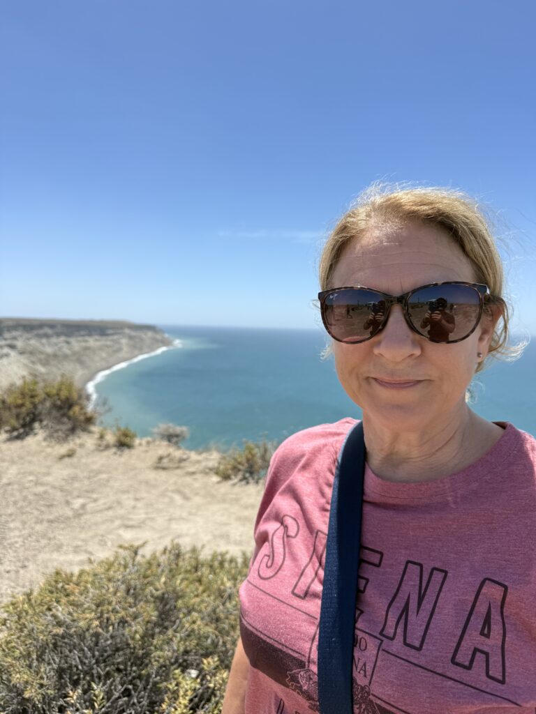 We arrived in Puerto Madryn around 7 am and had breakfast delivered to the room since we needed to be in the Constellation Theater by 7:30 for our excursion. Today’s adventure: a trip to see the penguins at El Pedral in Punta Ninfas—something we’d been really looking forward to.