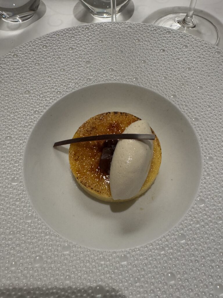 For dessert, John went (again) with the apple tart and vanilla ice cream, while I opted for crème brûlée. We all enjoyed the fortified wine paired with dessert, making it a fantastic final meal of the year.