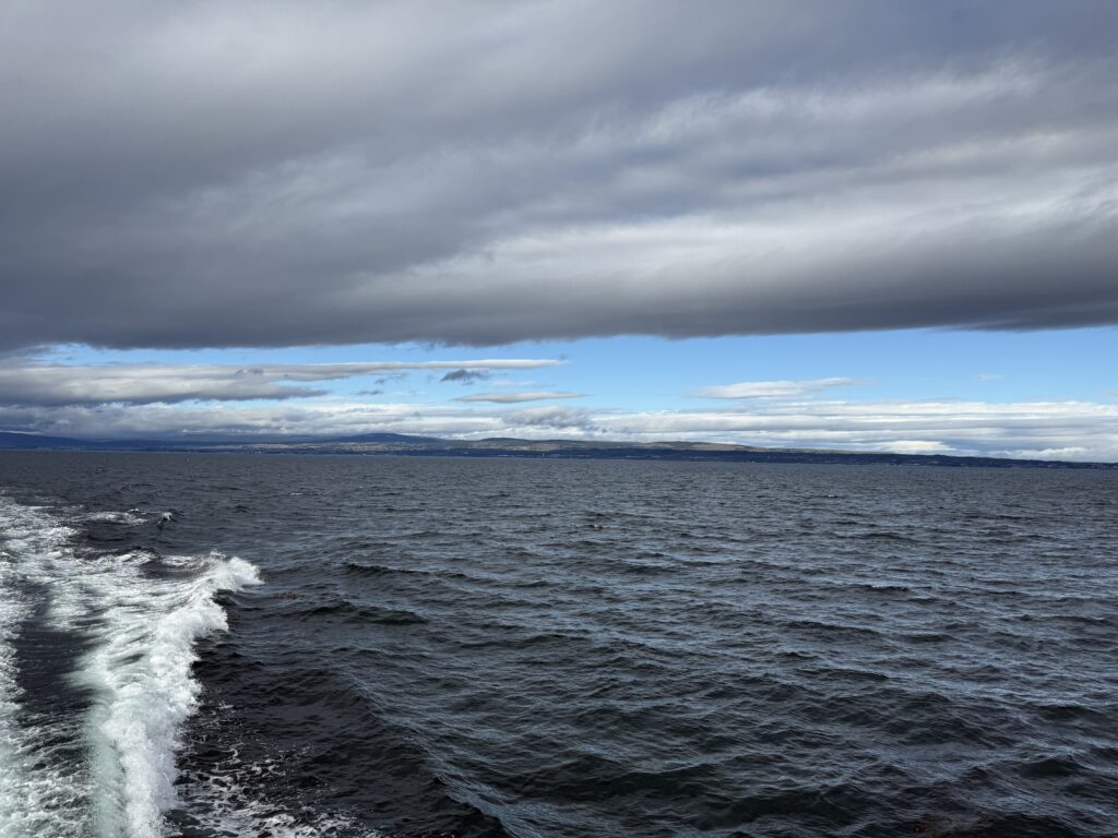 The island sits about 32 km (20 miles) northeast of Punta Arenas, right in the middle of the Strait of Magellan, and it’s accessible only by boat. Our catamaran allowed us to stay warm inside during the chilly ride, with the option to head out on deck once conditions allowed. Along the way, we were lucky enough to spot dolphins, which was an unexpected and very welcome bonus.