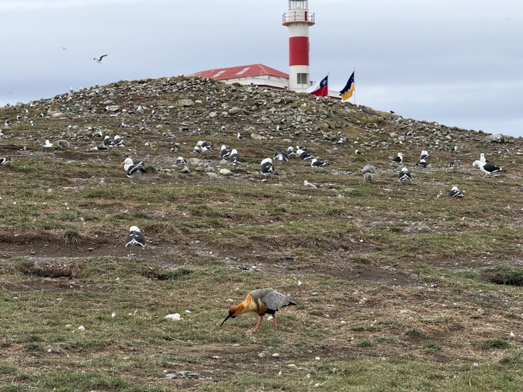Once on the island, we followed a clearly marked path and were reminded—several times—not to touch the penguins (they bite!). There were plenty of chicks, both penguin and seagull, and it was fascinating to see how well the two species coexist. The walk led us up to a lighthouse—one of the only structures on the island—which has been guiding ships through the Strait of Magellan since the early 1900s. From there, we made our way back down to reboard the catamaran and head back toward the ship.