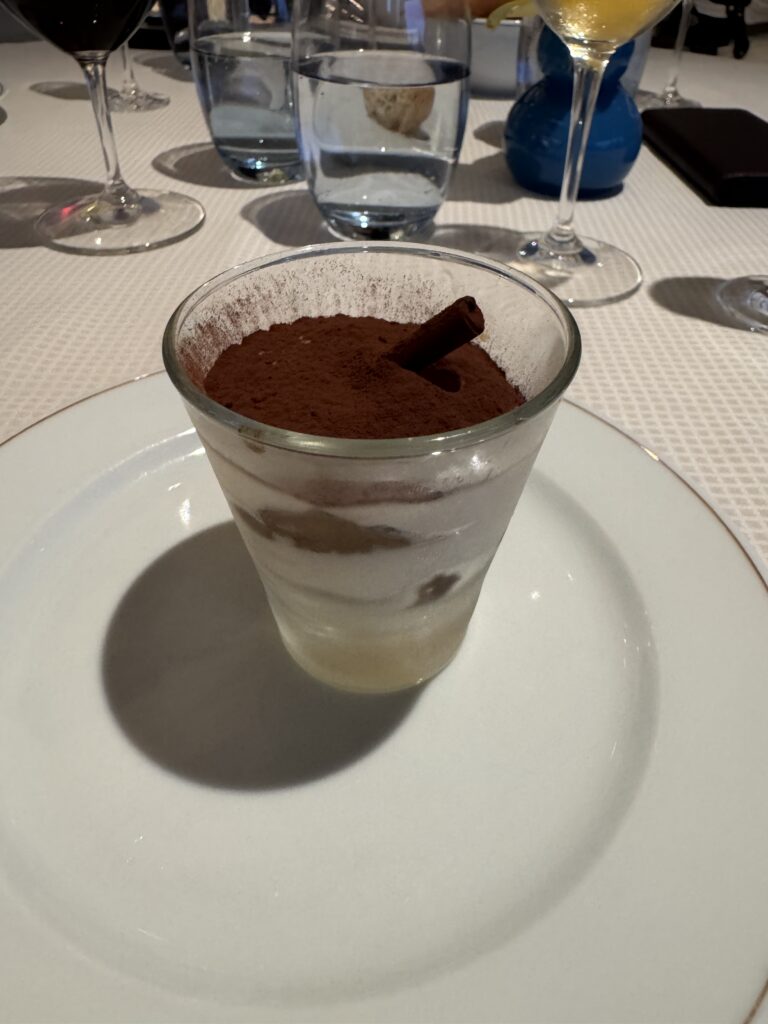 For dessert, I went with tiramisu, while John opted for chocolate and pistachio mousse. We finished the meal with our favorite—limoncello. As usual, the food was outstanding.